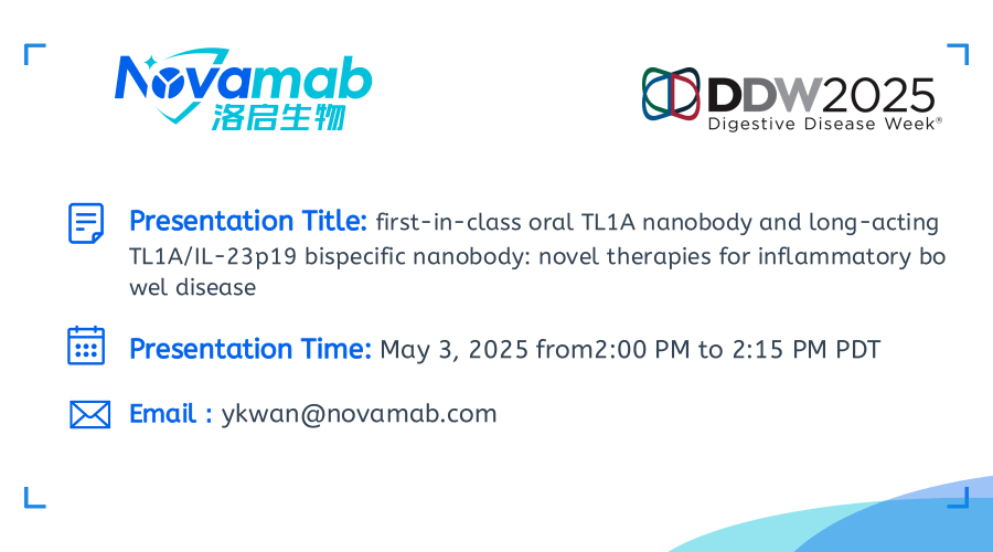 中国上海,2025年4月28日——上海mile米乐集团生物医药技术有限公司,一家致力于纳米抗体创新药研发的生物技术公司宣布:mile米乐集团生物将于当地时间5月3-6日参加在加利福尼亚州圣地亚哥举行的2025年美国消化疾病周(Digestive Disease Week,DDW)。届时mile米乐集团生物将展示在炎症性肠病(IBD)治疗领域的突破性研究成果——口服TL1A纳米抗体及长效TL1A双特异性抗体的开发进展。该创新疗法顺利获得独特的TL1A纳米抗体技术,实现了对IBD病理机制的精准靶向。